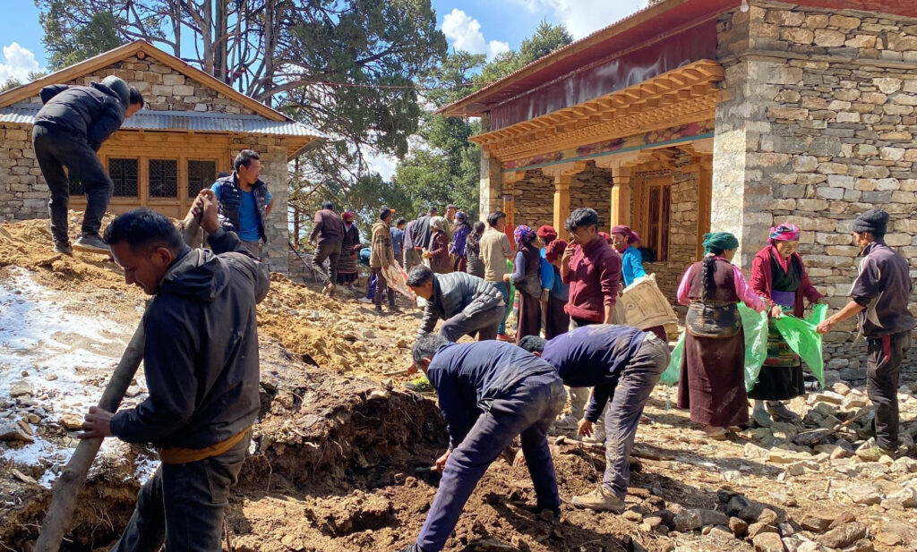 It was in a ruined state, and Dungse Rinpoche rebuilt and consecrated it in 2012. However, it was again destroyed by the 2015 earthquake. Now, it is on the verge of completing its reconstruction.