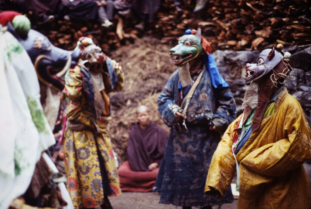 During this time, the lamas and tantric practitioners of the respective monasteries perform great practices according to the authentic ancient tradition. From the 26th to the 30th of the tenth Tibetan month, they engage in the Kagye Sangwa Yangdzog (Completely Secret Eight Precepts), Gon-ma Ning Kangsol (Propitiation of Protector Deities), secret mantra practices and retreats, confession and restoration rituals, and tsok (feast) gatherings. On the twenty-ninth day, they perform the complete torma reversal (gtor bzlog) and zorphen (casting of ritual threads) to transform negative influences. Additionally, there are cham (ritual dances) of the Gatekeepers (goba) and Female Gatekeepers (goma) that originated from Guru Chökyi Wangchuk’s pure vision, and highly blessed Black Hat dances. A public empowerment (khrom dbang) is also bestowed. The Narak is thus considered a community ritual and a special Gutor festival.