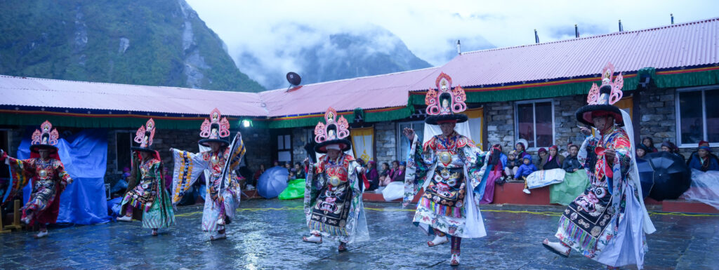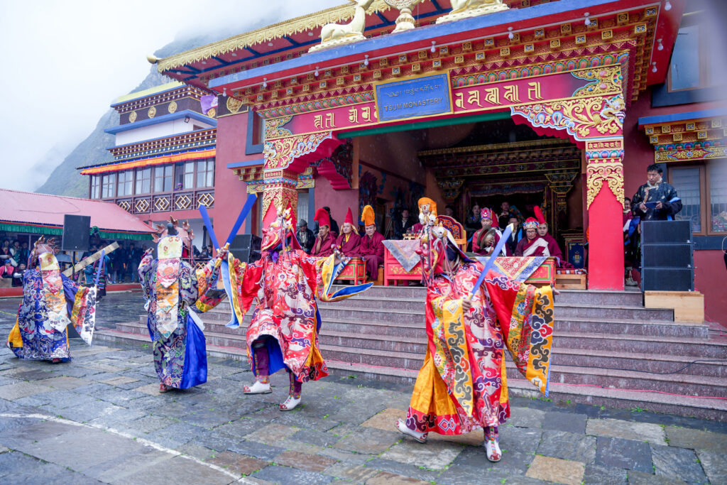 During this festival, all the people of Tsum (upper, lower, and middle regions) adorn themselves in new, elaborate traditional clothing. They enjoy two days of Dharma and material festivities, including local song and dance performances and various delicious foods, delighting their body, speech, and mind.